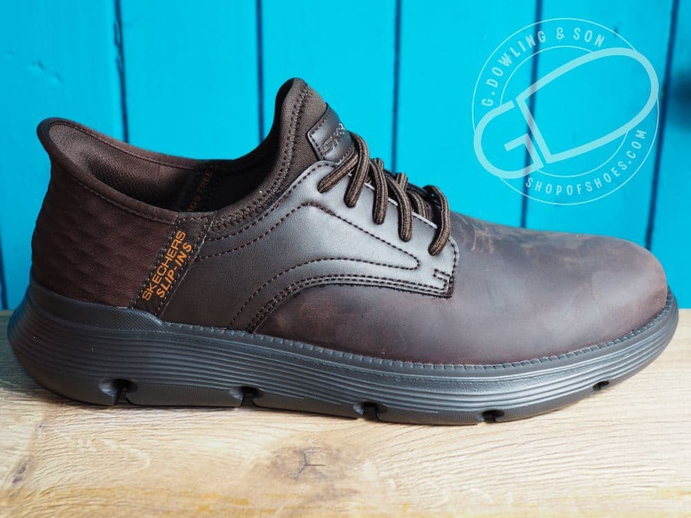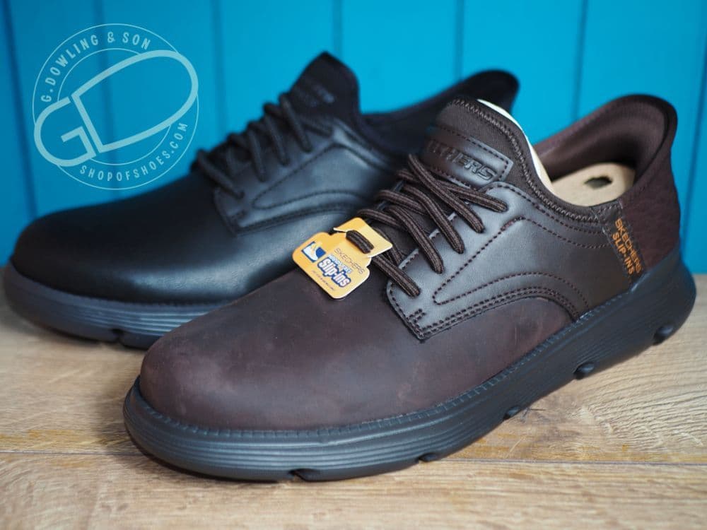 Black waterproof Skechers Slip-ins: Gervin lace-look leather shoe.