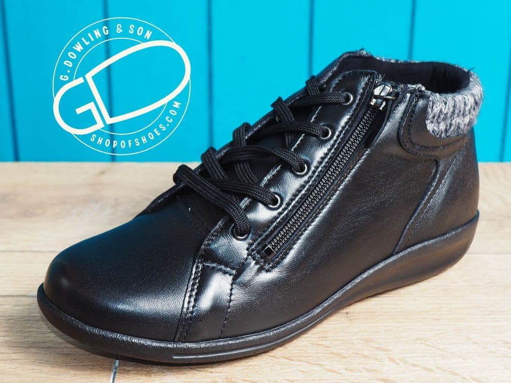 PIPIT zipped 2V black soft leather laced boot
